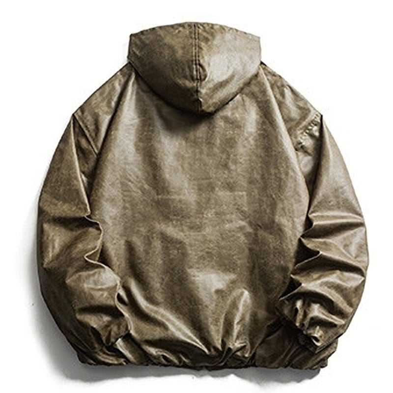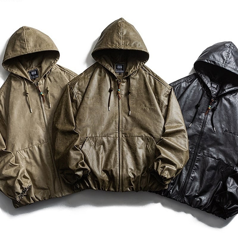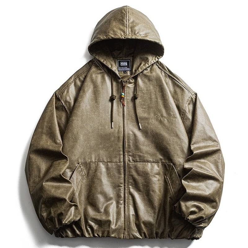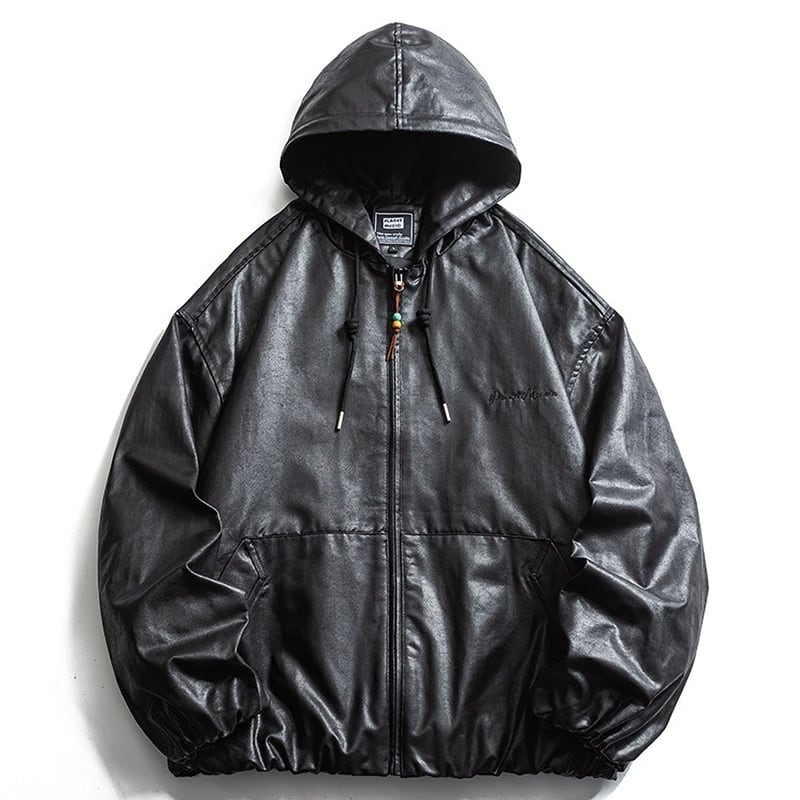Drawstring PU hoodie 3016