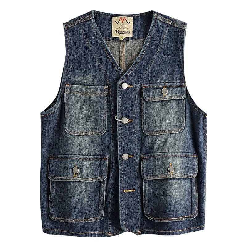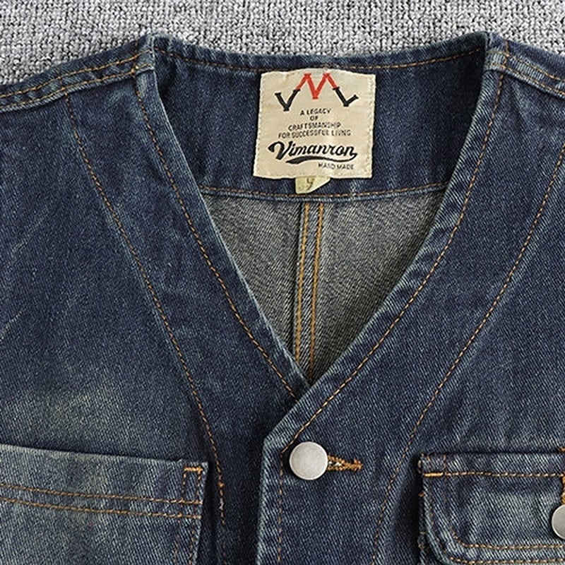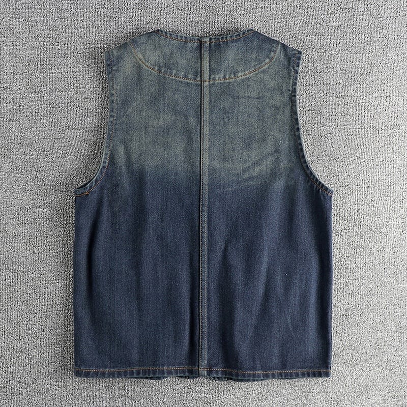 Distressed color denim vest 3111